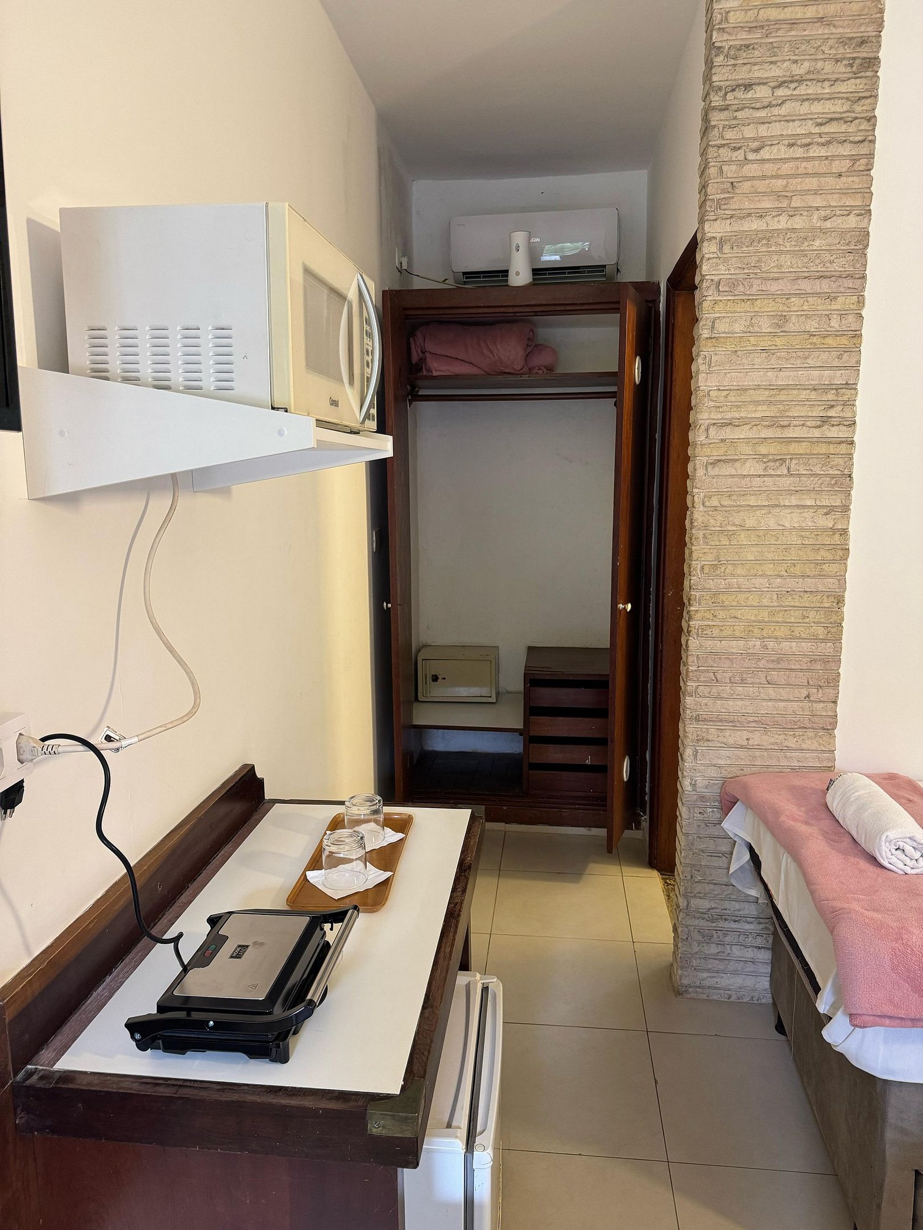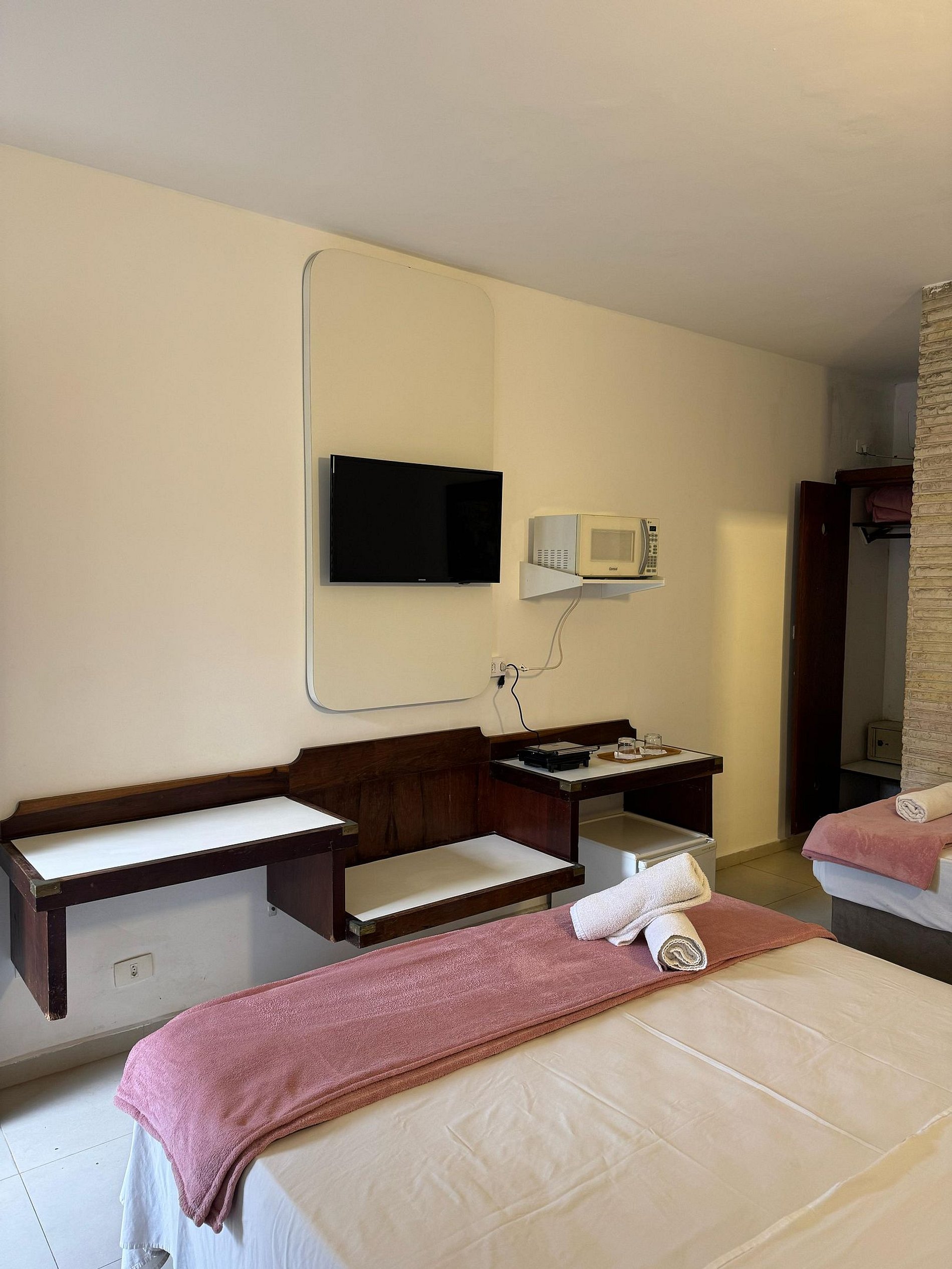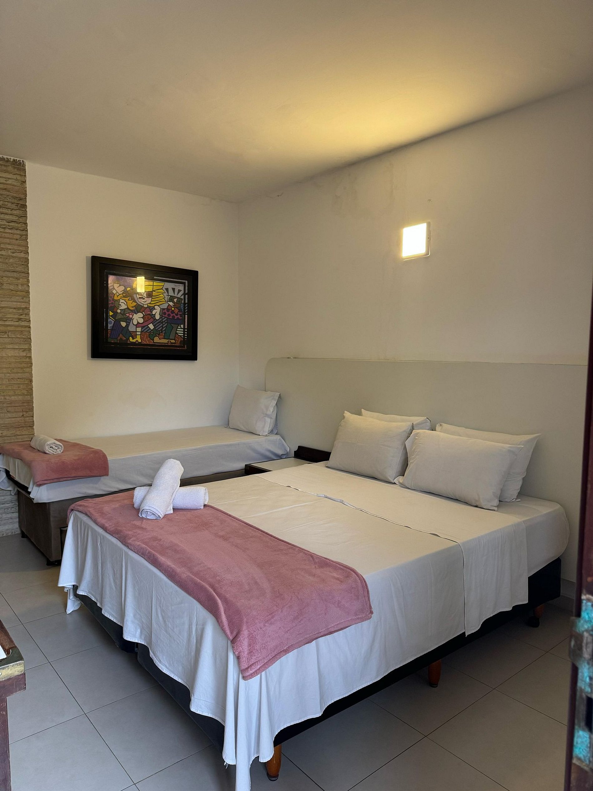 Hotel fornece Roupa de Cama e banho completo, papel higiênico e sabonete de chegada. Cobertor solicitar na recepção;