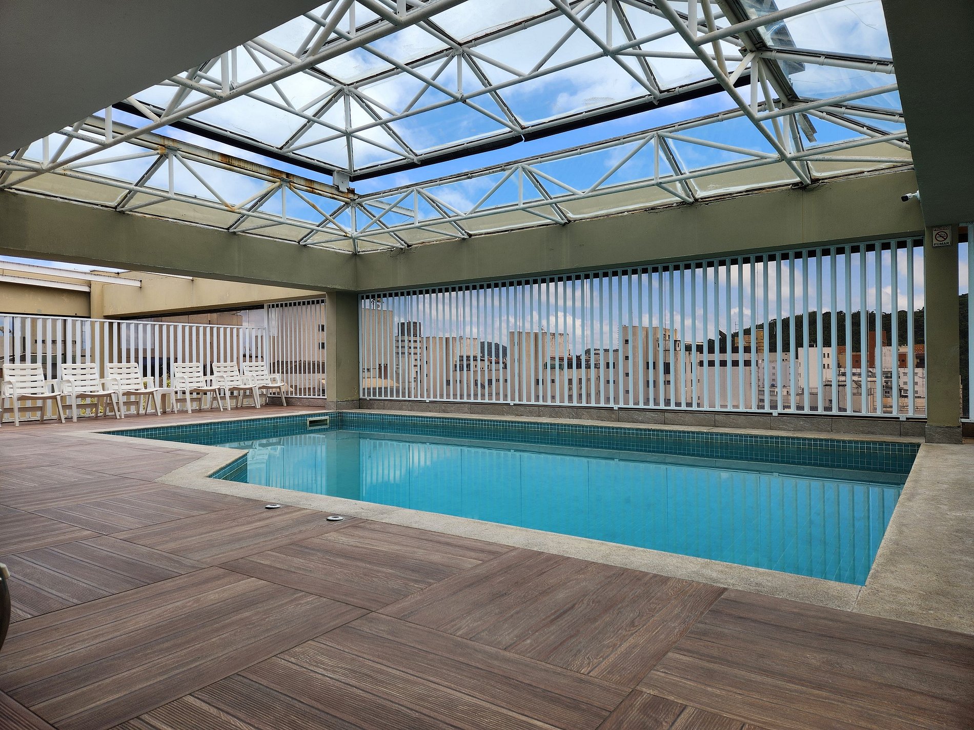 Possui Wi-Fi na área de lazer comum e nos apartamentos.